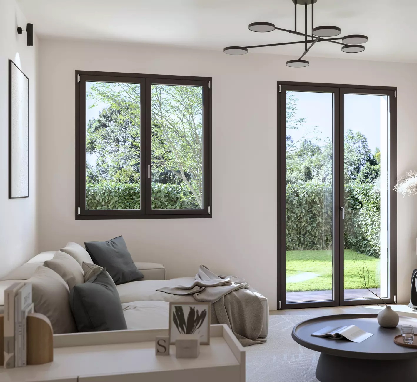 Composto da finestre a battente e una porta finestra, si caratterizza per dettagli raffinati e finiture contemporanee. presenta il telaio in battuta e cerniere a vista
