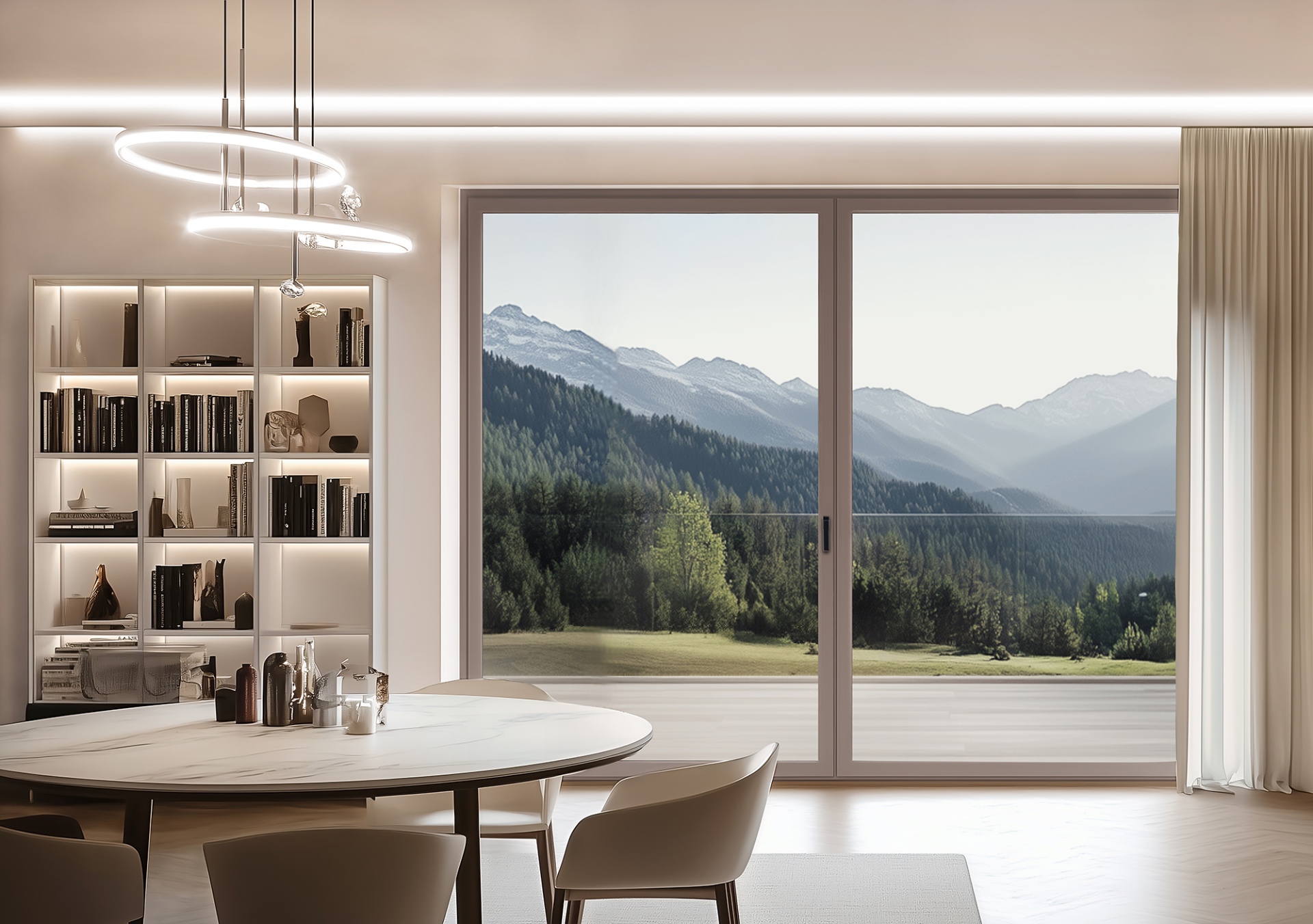 Questo design innovativo massimizza la luce naturale, creando ambienti luminosi e moderni senza interruzioni visive.