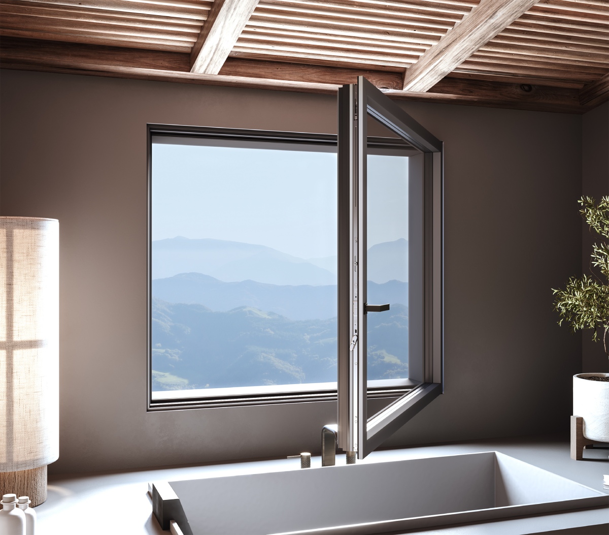 Con l’anta esterna a scomparsa e un telaio progettato per essere incassato nel muro, questo infisso ridefinisce il concetto di trasparenza.