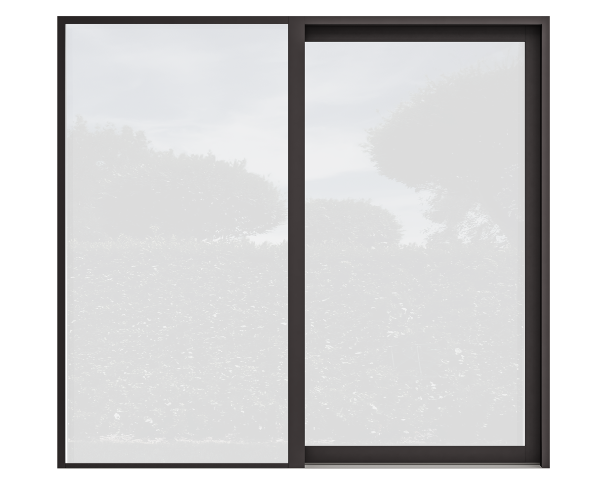 L'anta scorrevole, con una sezione sottile di soli 8 cm, mentre il lato fisso, massimizza la luce naturale grazie alla superficie vetrata ampia e continua.
